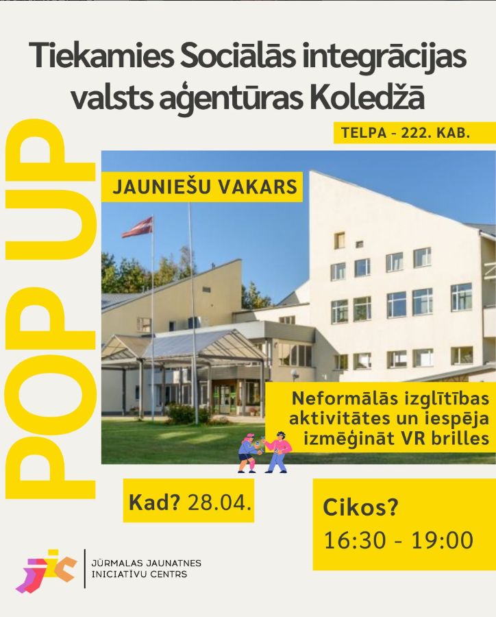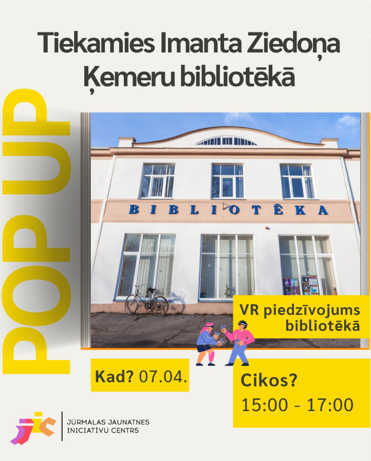 📢 JIC izbraukums: POP-UP aktivitātes Tavā apkaimē! Aicinām jauniešus uz aizraujošu pēcpusdienu Imanta Ziedoņa Ķemeru bibliotēkā! Šoreiz dosimies "VR piedzīvojumā bibliotēkā", kur ikvienam būs iespēja izmēģināt virtuālās realitātes brilles. Tā... |