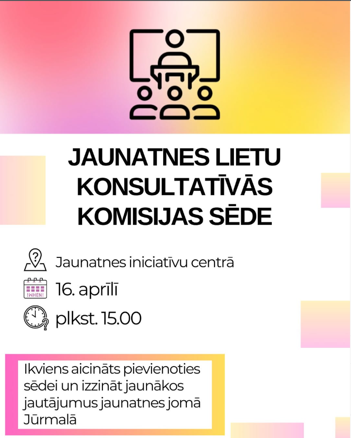Aicinām ikvienu interesentu uz Jaunatnes lietu konsultatīvās komisijas sēdi! Darba kārtībā galvenokārt tiks izskatīti jautājumi saistībā ar Jaunatnes iniciatīvu centra reorganizāciju no 2026. gada 1.jūnija. 🟢 Sēdē droši aicināts piedalīties... |