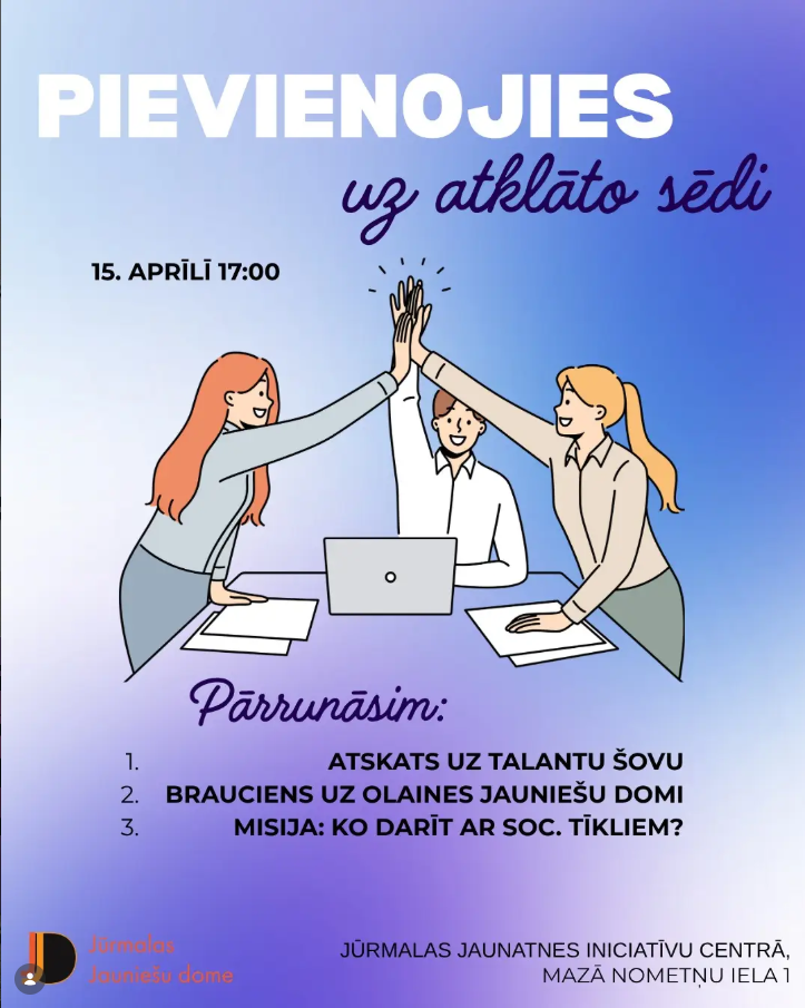 Pievienojies JJD atklātajai sēdei! Šīs sēdes laikā atskatīsimies uz Talantu Šovu, pārrunāsim braucienu uz Olaines Jauniešu Domi un izplānosim tālākās rīcības soc. tīklos. Tiekamies! ⭐ |